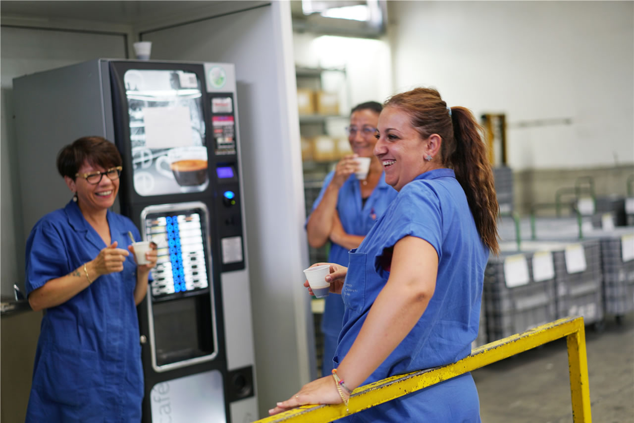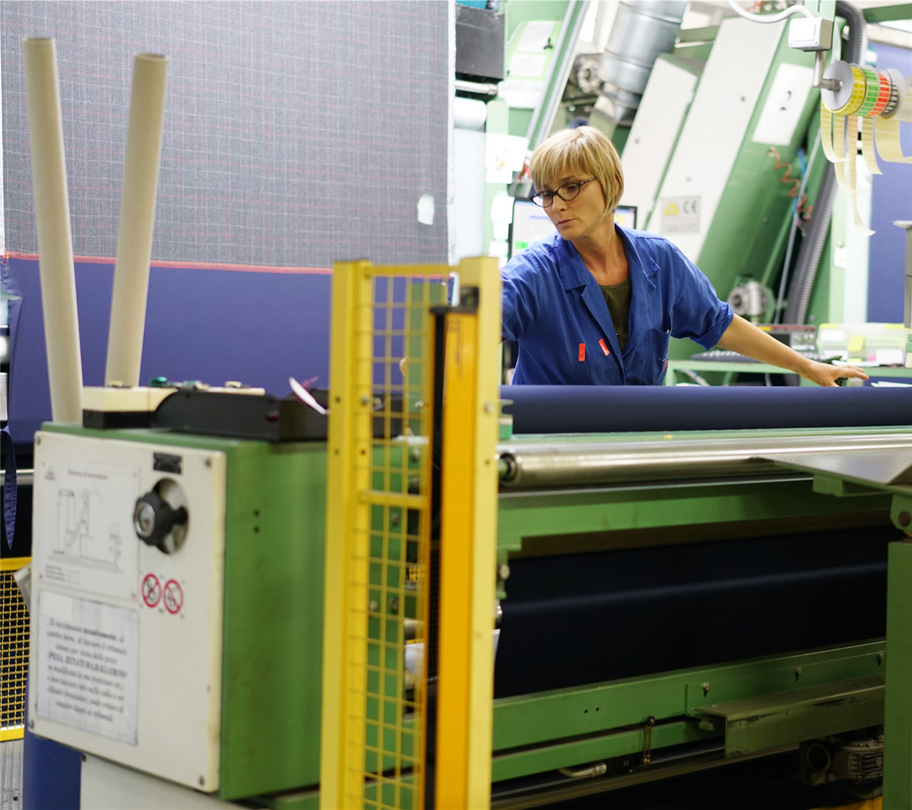 在厚重稳健的CERRUTTI工厂内部,几代人打造出一种经典简约的工业风格,微妙的艺术感与工业风在同一空间碰撞混合。享用休息时间的女工们聚集在茶水区,说笑着,五分钟后再投入专注的手工劳作,温情的工业格调让人更能集中于创造产品本身。